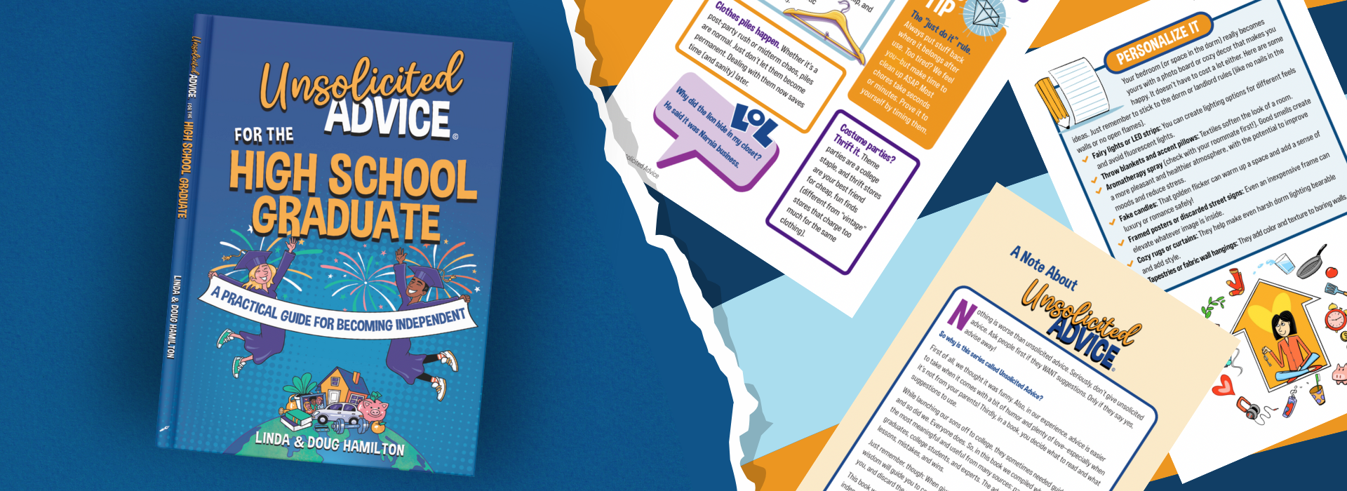 We’re Linda and Doug Hamilton — writers, educators, parents, and now, co-authors of the Unsolicited Advice book series.